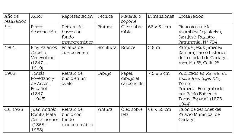 A la luz de lo expuesto, interesa examinar la relación entre la concepción política de la figura del presidente Jesús Jiménez Zamora producida por el discurso encomiástico, la prensa y la literatura histórica y las representaciones iconográficas de este prócer visualmente inmortalizado en la plástica de finales del siglo XIX y los inicios del siglo XX. Bajo esta perspectiva, se analizará no tanto la biografía política del personaje o la visión que de él tiene la historiografía, sino su iconografía. Si bien es cierto, que la iconografía del expresidente Jesús Jiménez no es muy extensa y ofrece escasas variaciones con respecto al modelo, no se deja pasar que su figura ha sido y es todavía polémica en la historiografía costarricense. Para unos fue un hombre de mentalidad visionaria y convicciones inquebrantables; mientras que otros lo juzgan por ser sumamente conservador y de actitudes autoritarias en su actuar político durante el ejercicio de sus dos administraciones, comprendidas entre 1863-1866 y 1868-1870. El objetivo principal es contribuir al estudio de uno de los ejes del proceso de construcción de la nación costarricense en el periodo de tránsito del siglo XIX al XX, a saber, la fabricación de héroes, próceres y beneméritos de la Patria (anexo 2).