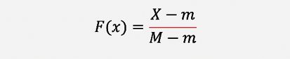 [Ecuación 3]Donde X: es el valor correspondiente de la variable o indicador; es el valor mínimo de las variables; M es el valor máximo de las variables.