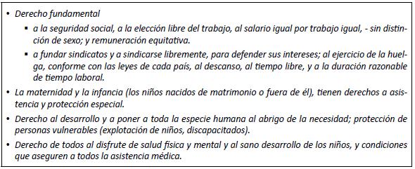 Declaración Universal de Derechos Humanos (1948); el Pacto de los Derechos Económicos, Sociales y Culturales 1966 (DESC); y su actualización en la Declaración del Milenio de las Naciones Unidas (2000).