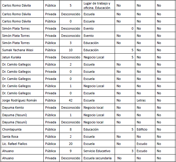 Las páginas no oficiales que indican “Escuela primaria” o “Escuela secundaria” lo hacen para referir que la página se dirige de forma particular a la Educación General Básica o al Bachillerato. Por otro lado, la descripción “Servicio educativo” utilizada en una de las páginas no oficiales de la UEM “Ahuano”, fue creada por profesores. A diferencia de las páginas oficiales que tenían como descriptor principal “Educación” y después “Escuela” las páginas no oficiales usan más el término “Escuela” con variaciones como “Pública” o “Especializada”, posiblemente porque el espacio de ser y estudiar en el cotidiano de las personas es calificado, principalmente, como “Escuela”.