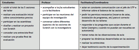 Las funciones para cada participante se determinaron como se muestra en la Tabla 2.