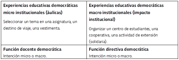 Tipología de experiencias educativas democráticas