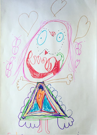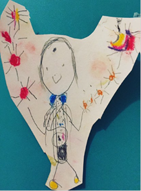 La materialidad en la imagen de la niña australiana-ceilandesa da forma al autorretrato de la niña irlandesa-inglesa (Ver Figura 5) Y su expresión de sí misma se revela en relación a la expresión de sí misma de la niña australiana-ceilandesa (Ver Figura 6) La representación de colores y símbolos utilizados por la niña australiana-ceilandesa es importante: ilustra la agencia de la materia a través de la transferencia de símbolos visuales.