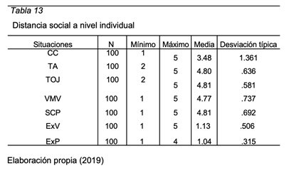 Se llevó a cabo el análisis descriptivo en el caso individual y social respecto a la distancia social, los resultados obtenidos se pueden observar en las Tablas 13 y 14.