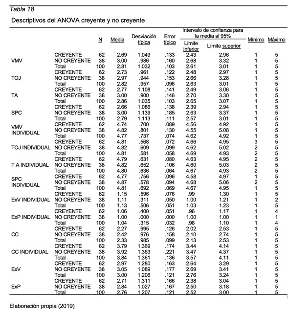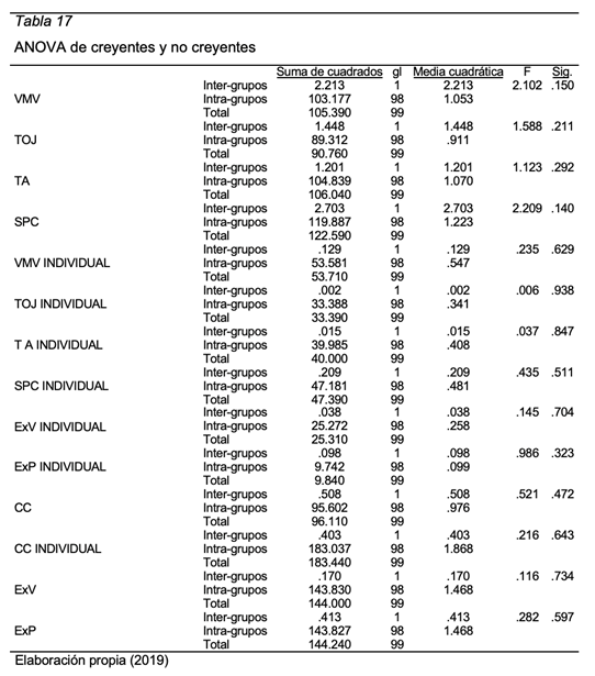 En cuanto a la variable religión, se realizó un comparativo para saber si la variable dependiente influye en la distancia social que pudiera o no haber en la muestra (ver Tablas 17 y 18).
