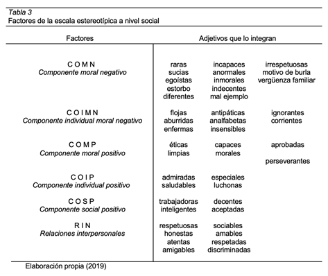 Los resultados del prejuicio a nivel cognitivo muestran que hay una tendencia individual a considerar a las personas homosexuales con adjetivos positivos. A nivel social, se observa que hay una tendencia general en cuanto a que la sociedad no les atribuye adjetivos positivos a las personas homosexuales, al contrario, se les atribuyen adjetivos negativos (ver Tabla 3).