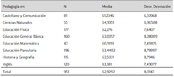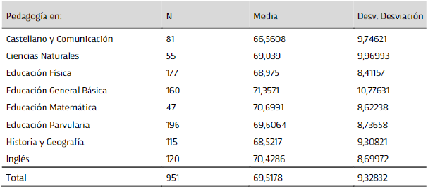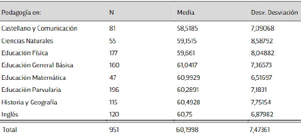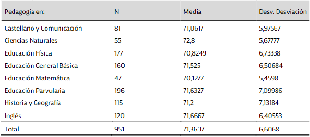 En las siguientes tablas, se pueden apreciar los puntajes de aceptación alcanzados por las distintas carreras según las cuatro variables presentes en el instrumento.