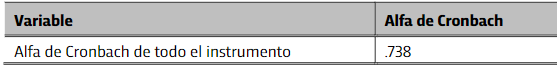 El instrumento según el análisis de confiabilidad es mayor a .7, lo que, según lo expresado por Morales Vallejo (2013), los valores superiores a .7 se consideran aceptables para investigaciones de tipo exploratorias. De esta manera, según los resultados obtenidos, el instrumento que se ha diseñado para esta investigación es válido y confiable.