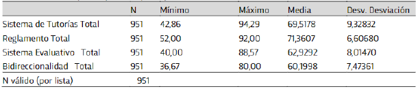 Estadísticos descriptivos para los puntajes totales de las dimensiones