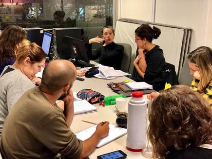 El equipo estaba conformado por María Amalia Miano y Ana Inés Heras, las docentes, y por adscriptos/as de distintas carreras de grado de la universidad (Educación, Estudios de la Comunicación y Psicopedagogía). Asimismo, durante los encuentros mensuales, solían participar, por un lado, invitadas/os de distintas experiencias que dialogaban con los proyectos involucrados en esta investigación y, por el otro, un becario doctoral de intercambio que nos brindaba asesoramiento en herramientas digitales para facilitar nuestras tareas. Cabe mencionar que este equipo estaba conformado por adscriptos/as de otro proyecto de investigación dirigido por Heras, con quienes trabajábamos en mutualidad y paridad en la colaboración de las distintas tareas ya que dichos proyectos dialogaban y los aportes de uno retroalimentaban el trabajo en el otro.