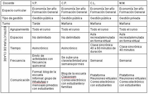 A continuación, se describen los resultados en relación con la estructura y organización de las clases sin presencialidad a partir de testimonios docentes.