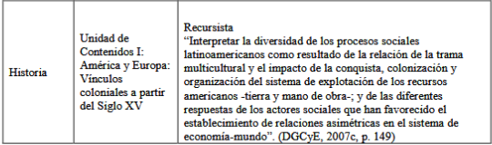 Estas últimas son las que sostienen las materias Construcción de la Ciudadanía, Ciencias Sociales de 1º año y Geografía de 2º y 3º. Merece una nota especial la falta de articulación de las materias de Historia de 2º y 3º con sus correspondientes de Geografía, que conforman una misma área y presentan una introducción común en el diseño curricular.