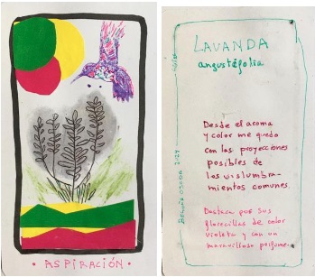 Desde este punto de vista y en el marco de la V Clínica del Doctorado en Narrativa Biográfica y (Auto)biográfica de la Universidad Nacional del Rosario, propusimos una visita a los jardines del Centro Cultural Victoria Ocampo de la ciudad de Mar del Plata. Allí, llegamos con los Augurios silvestres del Colectivo En la Orilla, integrado por Martina Ardissono, Agustina Ilari y Lucía Pérez (2020). Entre río y mar, propusimos expandir los augurios a partir de la observación y el registro de algunas de las más de 68 especies que crecen en los jardines de la villa. Desde los jacintos de agua y las tutías del Litoral hasta las dalias y los candy coralberries de Victoria; desde los ojos de poeta hasta el aroma y el color de las lavandas que “convocan proyecciones y vislumbramientos comunes”.