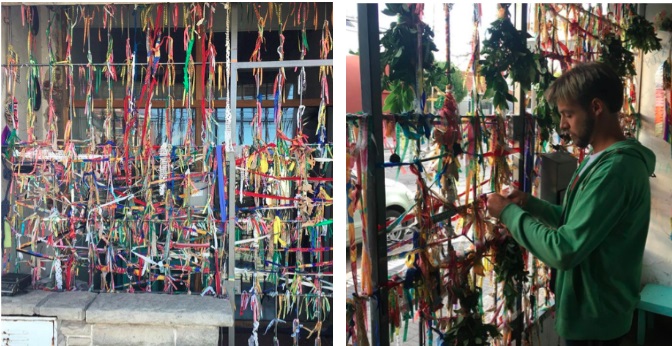 Mis deseos sexuales fueron colocados en una reja para desnombrar al catolicismo. Cada cinta deshabitó a un ángel íntimo. En aquel enero de 2020, mi abuelo José Ángel Ramallo había fallecido y los tejidos se multiplicaron, sumado a que los trapos de piso nunca fueron un objeto importante en mi vida, hasta que una maestra me hizo reconocer en ellos la acción performática de su arte. Las cintas de colores y las tintas de este texto, en su relación, se volvieron cada vez más incontrolables, en oposición a la perspectiva renacentista, con un sujeto cartesiano racional y autorreflexivo que establece una posición jerárquica con una retórica de posesión, dominio visual y centrado, la instalación como forma de arte admitió que cada persona estuviese intrínsecamente dislocada y dividida. Para Claire Bishop (2006), las teorías postestructuralista, feminista y poscolonial sostienen la fantasía de centrarse, sin embargo, son las instalaciones las que no exigen un modo correcto de mirar el mundo, ni ningún lugar privilegiado desde el que hacer tales juicios. Las instalaciones descentran al sujeto porque niegan al espectador ese sitio ideal desde el que contemplar la obra. No sólo articulan una noción intelectual de subjetividad dispersa, sino que invitan a experimentar esta fragmentación para perder certezas. En la medida en que no sólo tratan de problematizar el sujeto, sino que también lo producen, la participación activa de un espectador para generar el significado de la obra actúa como deseo que detiene la pasividad. Puede, incluso, que las obras de arte ya no necesiten adoptar la forma de experiencia interactiva y de inmersión, si consideramos que el arte de instalación se caracteriza por cierto antagonismo hacia su entorno, una fricción con el contexto que opone resistencia a la presión organizativa, que establece sus propios términos de interacción (Brishop, 2006).