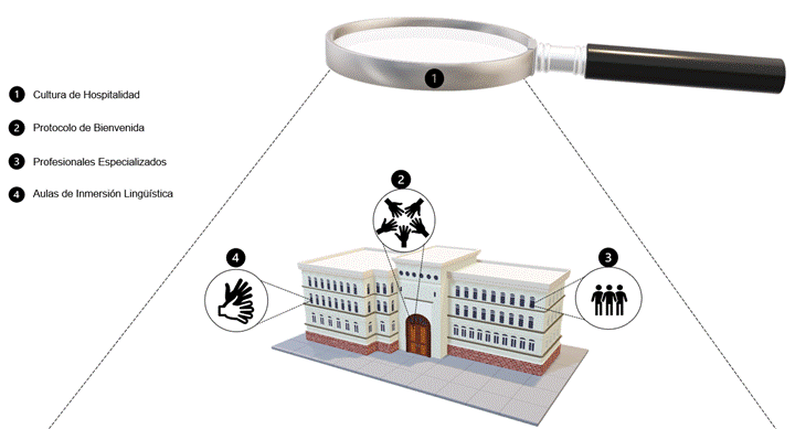 Entonces, los dispositivos de acogida son apoyos creados e implementados para el ingreso y permanencia de los estudiantes provenientes de otros países, usuarios de una lengua diferente a la vehicular y, por tanto, de una cultura distinta a la del lugar de llegada. Jiménez et al. (2017) plantean que, de esta manera, se facilita su proceso de adaptación, quienes se encuentran más propensos a enfrentar situaciones que dificultan su incorporación.