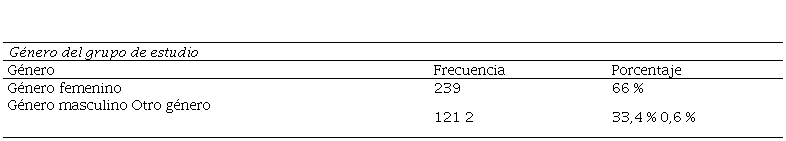 En las tablas 2 y 3, se recogen algunas características del estudiantado de primer año de la carrera de Educación Básica del grupo de estudio. En la Tabla 2, de género y, en la Tabla 3, sociodemográficas.
