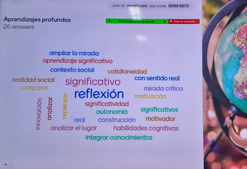 Realizamos el ejercicio de ubicarnos a partir de este enfoque, que pretende problematizar y atender las necesidades y demandas de la diversidad de actores sociales involucrados desde la mirada crítica. Durante los encuentros, se planeaba el debate en torno al litio a partir de una pregunta disparadora: ¿bienes comunes vs. recursos estratégicos?, para complejizar la actividad litífera en Argentina y sus relaciones geopolíticas. A su vez, se presenta como urgencia el tratamiento de la educación ambiental y educación sexual integral (ESI) con perspectiva de género, ecofeminismos, educación ambiental y TIC, educación ambiental e interculturalidad, educación ambiental y memoria. Estas interseccionalidades resultan posibles puertas de entrada para el abordaje interdisciplinario e integrado, ya que potenciarían estudios de casos y problemas de investigación que no concluirían en la definición de conceptos solamente, sino que se profundizarían análisis y relaciones territoriales a diversas escalas de análisis. La reflexión planteada durante los encuentros es que este modo de pensar la EA, en perspectiva sociocrítica, favorece a los aprendizajes profundos vs. aprendizajes inertes (Furman, 2021).