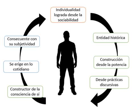 De ahí que el proceso de formación o subjetivación se conciba como el resultado de las habilidades diarias expresadas en la configuración y reconfiguración que lo sitúa y le da forma. Lo cual brinda una colocación que, en lo concreto, está determinada por la propia historia que hace consciente de sí. En ese constante movimiento de colocación y recolocación, que no tiene un punto de llegada, sino de retorno, la producción de sentidos que hace a partir de esas formaciones discursivas que caracterizan lo cotidiano, donde no hay división entre la teoría y la práctica, llevan al sujeto a que rompa las limitaciones de la lógica y se distancie de la razón instrumental. Por consiguiente,
