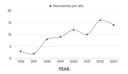 Se optó por un enfoque cualitativo dado que el interés se centró en identificar perspectivas, enfoques, tipos, tendencias y estrategias. En el proceso de investigación, se desglosaron los artículos por cada año, ilustrando el interés progresivo, como se observa en la Gráfica 1.