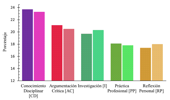 Nota: los tonos más oscuros corresponden a docentes y los claros a estudiantes.