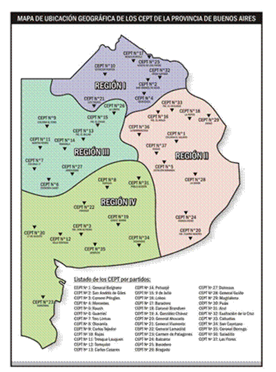 La provincia de Buenos Aires cuenta con un total de 35 CEPT que cubren casi la totalidad del territorio. Cada CEPT es, al mismo tiempo, una asociación civil de padres y madres que cuenta con un Consejo de Administración. A su vez, los 35 CEPT están nucleados en una organización de segundo grado que se denomina FACEPT (Federación de Asociaciones de Centros Educativos para la Producción Total). Estas escuelas adquieren relevancia por sostener el arraigo de las poblaciones en los ámbitos rurales, puesto que la alternancia permite que los jóvenes continúen colaborando en las actividades productivas que realizan sus familias, a la vez que facilita el acceso al establecimiento escolar al reducir la cantidad de veces que hay que trasladarse hacia las escuelas (ya que los estudiantes permanecen dos semanas en sus hogares y una semana en el centro educativo).