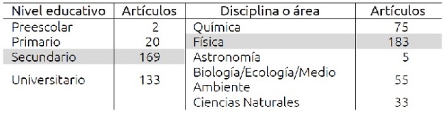 Respecto al nivel educativo y la disciplina en torno a la cual se estudian los procesos de enseñanza y aprendizaje, la Física y la Educación Secundaria son el foco de las investigaciones que se realizan actualmente en América Latina y el Caribe, tendencia histórica en el ámbito de la investigación en Didáctica de las Ciencias Naturales. No obstante, hay indicios de una creciente preocupación sobre las problemáticas que suceden en el nivel universitario, y se observa también una paulatina inclusión de las problemáticas ambientales como temática científica de interés (tendencia mundial en la investigación y educación científica).