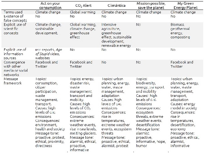 Despite the increase in projects over the last decade, the field of online climate change gaming is still far from mature. A better understanding of the nature and communicative characteristics of games is needed. This could help teachers to decide on appropriate games as pedagogical resources. Although discussions have begun on the analysis of such games and several criteria have been proposed (Liarakou et al., 2012; Liu & Ding, 2009; Martí-Parreño et al., 2014), most sets of criteria focus only on pedagogical aspects, ignoring the communicative elements. We also observe how the majority of studies, initiatives and projects address English-speaking games and pay little attention to contributions in other languages, such as Spanish. This study aims to bridge these gaps.