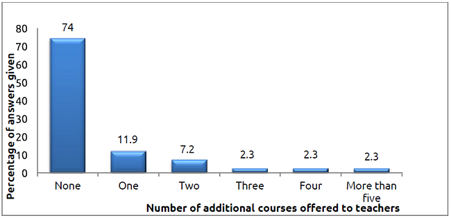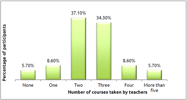 Another important aspect of teachers’ knowledge of literature is the professional training they have undertaken after finishing higher education. To keep up with recent developments, professionals need to constantly participate in workshops, courses and conferences. As a result, effective training can be achieved through efforts carried out not only by individuals but also through institutional support and commitment. Figure 5 illustrates the incidence of further training teachers have received in order to teach literature in EBHS.