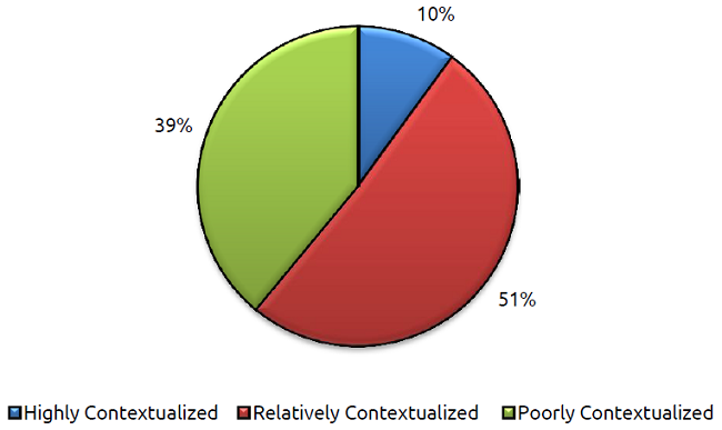Figure 3 shows that 90% of participants consider that the courses they took at university lack contextualization. For these teachers, there was no clear theoretical connection with their profession due to the absence of a well-defined teaching orientation that could help them put into practice the content they studied. Some teachers stated that “the aims of courses were to read stories, plays, and poems in order to analyze some literary elements, but never to focus on how to teach literature.” Other participants expressed that “the university courses were very ambitious in terms of the amount of content, and superficial when referring to explanations and analyses. Time was always an issue.” For example, one participant pointed out: “I can barely remember the content or the stories. I remember by heart the names and lives of authors, but they were not significant.” Consequently, as shown in figure 4, most courses taken at university level were not considered very useful: