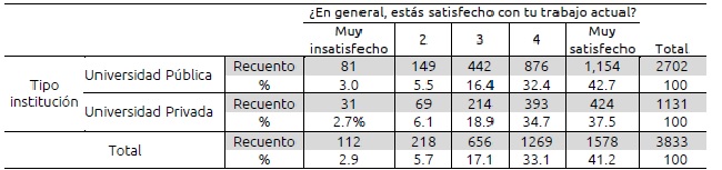 Palabras clave: Universidad, condiciones de empleo, satisfacción en el trabajo.