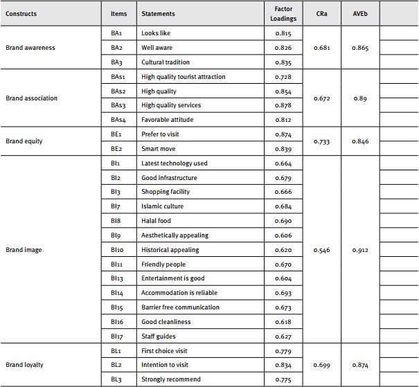 ABSTRACT: Studies that measure the brand equity of destination brands by using the Customer-Based Brand Equity (CBBE) model in a developing country context are scarce. The present study investigates the destination brand equity of the Lahore Fort by employing the CBBE model in a developing country context of Pakistan. Following the positivist tradition, we adopted a survey-based approach to collect data from 237 tourists visiting the Lahore Fort. Data were collected through a questionnaire developed to explain the relationship of brand awareness, brand image, brand association, and brand loyalty with Lahore Fort’s overall brand equity. We used various robust statistical techniques such as correlation, regression and confirmatory factor analysis (using PLS method) to reach meaningful conclusions and found that brand image and brand associations positively contribute to brand loyalty. Furthermore, brand loyalty significantly contributes towards overall brand equity. Pragmatically, this study measures the customer based brand equity of the Lahore Fort, a destination brand. The results are useful as they suggest a few strategies that can help policy makers to enhance Lahore Fort’s brand performance.