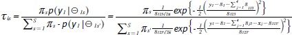 O classificador adaptável visa selecionar um subconjunto de indicadores mais informativos do status socioeconômico de cada domicílio. A entrevista adaptável inicia-se com a pergunta das quatro covariáveis, seguida da questão da renda familiar bruta mensal. Como a renda é um indicador contínuo, a probabilidade posterior de o domicílio pertencer ao estrato s dada a renda y1 é dada por: