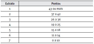Por último, o novo classificador simplificado adotado pela ABEP (2013), construído por meio de regressão logística, compreende 15 indicadores, cujos pontos foram definidos pelo coeficiente de cada variável dummy selecionada (Tabela 6). Em função da soma obtida de pontos, classifica-se o domicílio no respectivo estrato socioeconômico (Tabela 7). Ressalte-se que esse classificador retrata uma classificação única para todo o Brasil, não levando em consideração a localização geográfica e composição familiar do consumidor.