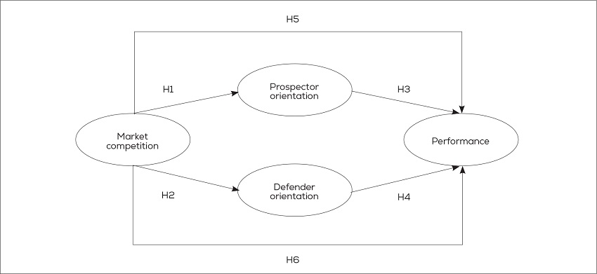 H1: There is a positive association between the intensity of market competition and using a prospector strategy.