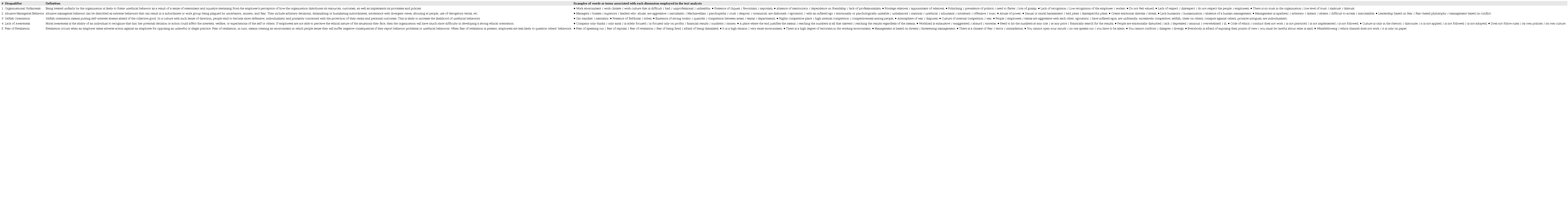 As my goal in this research is to assess unethical culture in companies, I focus on Ethical Systems’ five disqualifiers to create my construct. In Table 2, I present a definition of each unethical culture dimension and the corresponding set of terms associated with them.