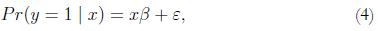 [ec. 4]where vector x denote the observed independent variables and ε is the random error term.