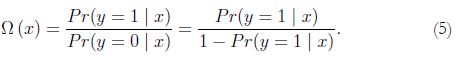 [ec. 5]This formulation indicates the occurrence frequency of an event ( y = 1) with respect to non–occurrence ( y = 0). The ratios log or logit is within the range of –∞ to ∞, and it assumes the linear logit form, which interpretation is frequently focused on changes in probability ratios:
