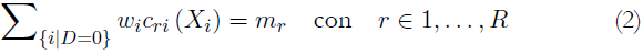 describe el conjunto de R condiciones impuestas sobre los momentos de las covariables para el grupo de control. Para la estimación se emplea como métrica de distancia la medida de divergencia Kullback (1959), de manera que: