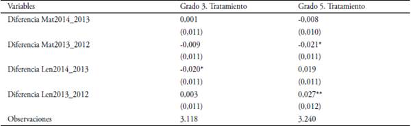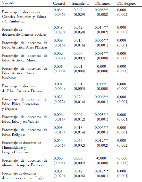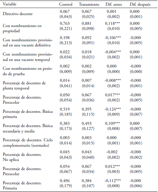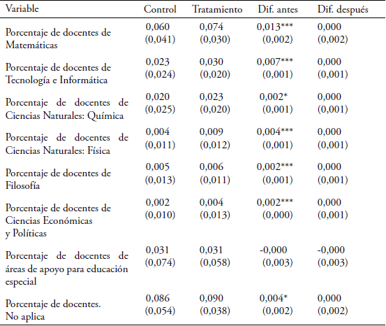 Sin embargo, dado que con el método de diferencias en diferencias únicamente se controlan las características no observables de las instituciones que son constantes en el tiempo, se decidió realizar una prueba de balance para ver la comparabilidad de los dos grupos en términos de variables observables. Los resultados de este ejercicio se pueden observar en el Anexo 1. Tal y como se muestra en dicha tabla, existen diferencias estadísticamente significativas en muchas de las características observables de las instituciones, lo cual evidencia la necesidad de emplear un método para controlar estas disparidades.