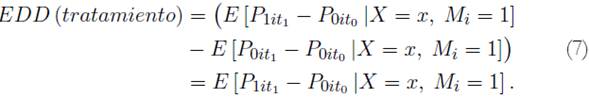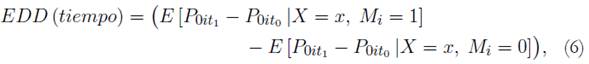que también están afectadas por el cambio de política. Así, la diferencia entre las esperanzas debe poder atribuirse a la implementación del Metroplús. De acuerdo con Parmeter y Pope (2013), esto implica que el efecto causal del EDD se puede describir como la suma de dos piezas, un efecto tiempo: