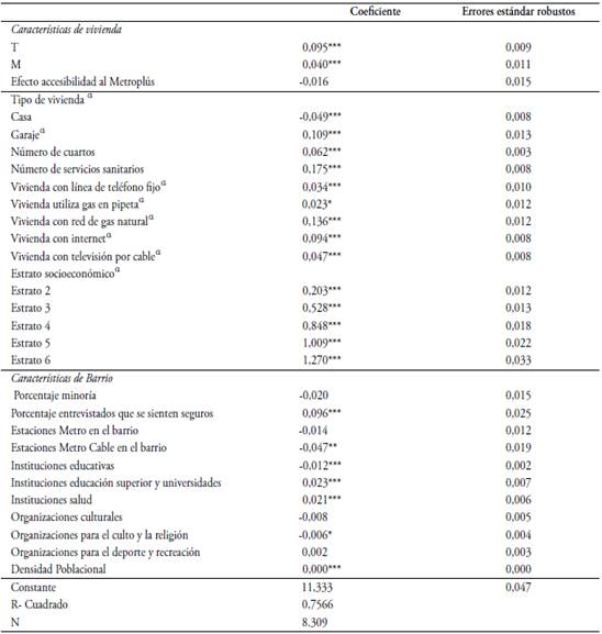Este artículo estima el efecto de la accesibilidad al Metroplús sobre la Calidad de Vida Urbana en Medellín. Para hacerlo, utiliza el enfoque hedónico de CV, midiéndola como un agregado de la contribución al bienestar de cada uno de los amenities disponibles en el lugar en que se reside. Esto bajo el supuesto de que las personas están dispuestas a pagar un mayor precio por una vivienda que les permite acceder a un mayor número de amenities que tienen un efecto positivo sobre su bienestar.