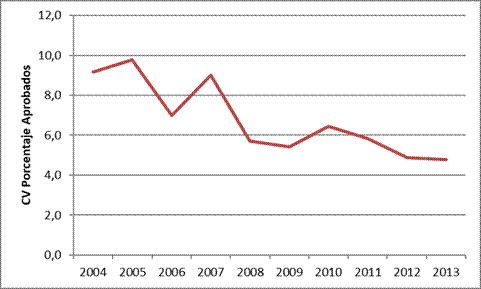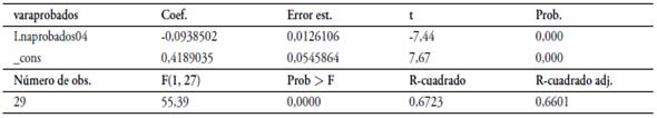 En la Tabla 5 se observa la salida de la estimación de los estudiantes aprobados en el periodo 2004-2013.
