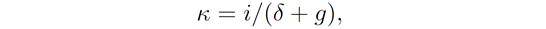 donde κ es la razón esperada capital-producto, i es la razón esperada del esfuerzo de inversión (participación de la inversión en el producto), δ es la tasa de depreciación del capital, y g es la tasa de crecimiento promedio anual del producto en el período de análisis. El método se le debe a Harberger (1972). La Tabla 2 muestra los parámetros requeridos para calcular el coeficiente κ de cada forma de capital.