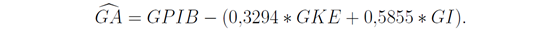 Con la información procesada en la regresión 2 es posible estimar el crecimiento de la productividad multifactorial (el coeficiente GA de la ecuación 1) como sigue: