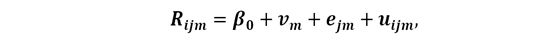 Como se formuló anteriormente, el rendimiento educativo individual depende de un gran número de factores, de las interacciones entre estos y del anidamiento implícito del estudiante; situación descrita en la ecuación (9). No obstante, antes de aplicar aquel modelo, es necesario examinar la relevancia de una estructura en tres niveles. Por lo tanto, es fundamental estimar el siguiente modelo: