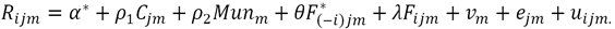 en donde M es un vector de variables observables a nivel de municipio y ξ es un vector cuyos componentes están asociados a cada municipio; así, se justifica la estructura multinivel que deseamos. Adicionalmente, F( debería incorporar las variables que capturen los atributos comunes de estudiantes que compartan o interactúen algún nivel (como índices socioeconómicos en distintos niveles de agregación).