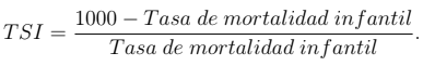 En este punto, es importante hacer una salvedad: el uso de la tasa de mortalidad infantil como un resultado representa un problema para el DEA, ya que se requiere que las salidas estén expresadas de tal forma que “más sea mejor”; sin embargo, Alfonso y St. Aubyn (2004) resuelven este problema calculando una tasa de supervivencia infantil (TSI), formulada de la siguiente manera: