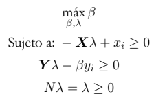 Además, λ es un vector (n × 1) de constantes que mide los pesos utilizados para calcular la localización de una DMU ineficiente, si llegara a ser eficiente.