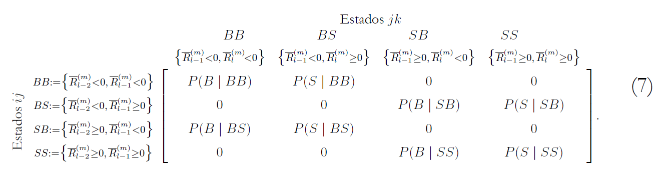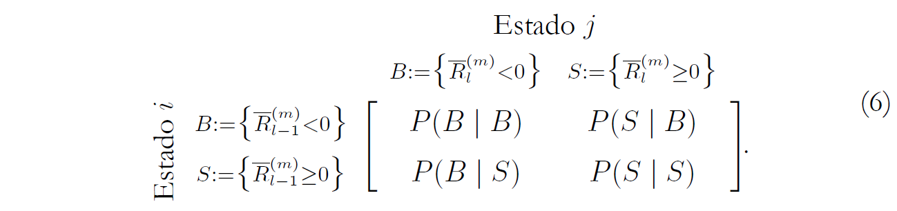 como en la expresión (8), y partiendo de estos, como se mencionó anteriormente, se determinan las medidas que permiten construir los estados y las cadenas de Markov de los nuevos rendimientos.