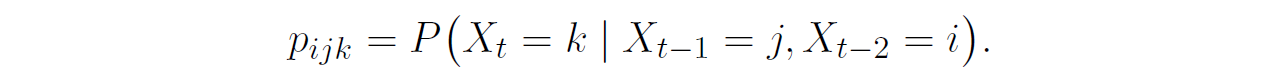 De acuerdo a Bhat y Miller (2002), las probabilidades de transición en una cadena de Markov de segundo orden vienen dadas por: